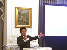 5月は五健堂グループ 最高経営責任者 蓮尾拓也氏をお招きして、「理念経営と仕組み創り」をテーマにお話し頂きました。 いつもと場所を替えホテルモントレで例会を開催し、会員以外の参加を含め27名の出席の例会になりました。
